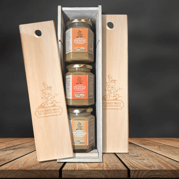Mes 6 recettes classiques dans un joli coffret : le caramel, le caram’choco, le caram’miel, le caram crok, le caram’zest et le caram’ rhum…